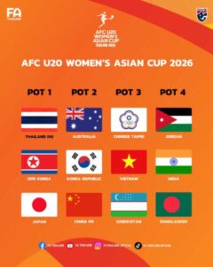 สมาพันธ์ฟุตบอลแห่งเอเชีย หรือ เอเอฟซี เตรียมจัดพิธีจับสลาก แบ่งสายการแข่งขันฟุตบอลหญิงชิงแชมป์เอเชีย รุ่นอายุไม่เกิน 20 ปี AFC U20 Women’s Asian Cup Thailand 2026 รอบสุดท้าย ที่จะจัดขึ้นที่ประเทศไทย ระหว่างวันที่ 1-18 เมษายน 2569