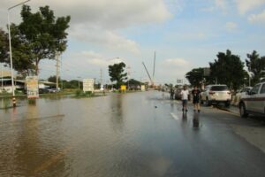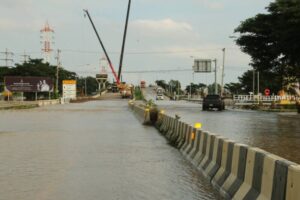 จากนั้นเวลา 16.00 น. ผบช.ภ.1 เดินทางต่อไปยังบริเวณจุดกลับรถใต้สะพานป่าโมก ข้ามแม่น้ำเจ้าพระยา ซึ่งเป็นพื้นที่น้ำท่วมขังบนถนนสาย 33 สุพรรณบุรี–อ่างทอง ระยะทางประมาณ 150 เมตร ทั้งสองฝั่งก่อนขึ้นสะพาน ในเขตพื้นที่รับผิดชอบของ สภ.ป่าโมก จ.อ่างทอง