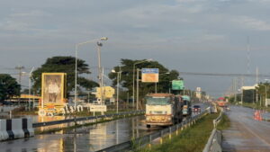 เมื่อเวลา 08.00 น. วันที่ 9 พ.ย. 68 ที่บริเวณสี่แยกไฟแดงป่าโมก อำเภอป่าโมก จังหวัดอ่างทอง พ.ต.อ.ศักดิ์ชัย ไกรวีระเดชาชัย ผกก.สภ.ป่าโมก นำเจ้าหน้าที่ตำรวจ สภ.ป่าโมก ดำเนินการวางกรวยจราจร บริเวณสะพานข้ามแม่น้ำเจ้าพระยาป่าโมก 1 ช่องทางแบบสวนเลน เส้นทางเข้าตลาดป่าโมก ถนน 33 สายป่าโมก-สุพรรณบุรี เพื่ออำนวยความสะดวกแก่ประชาชน หลังจากน้ำเจ้าพระยาได้ไหลลอดใต้พนังกั้นน้ำ เข้าท่วมพื้นที่ตลาดป่าโมกและถนนสาย 33 ป่าโมก-สุพรรณบุรี จนต้องปิดการจราจรหลังน้ำท่วมสูง