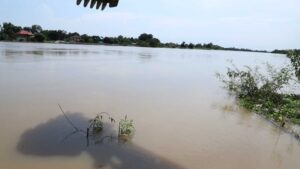 ท้ายเขื่อนเจ้าพระยาระบายน้ำ 2,800 ลูกบาศก์เมตรวินาที เกิดรอยรั่วส่งผลให้น้ำไหลทะลักเข้าท่วมบ้านเรือนประชาชน ในบริเวณหมู่ 2 ต.พระงาม อ.พรหมบุรี จ.สิงห์บุรี