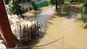 โดยนำรถขุด อบต.พระงาม ดำเนินการวาง big bag ตั้งแนวเสาเข็ม อบจ.สิงห์บุรี สนับสนุน กระสอบบรรจุทรายขนาดใหญ่เร่งดำเนินการชะลอน้ำปิดแนวรั่วถมด้วยดินกดทับด้วยผ้าใบอีกชั้นหนึ่ง เพื่อเป็นการชะลอน้ำที่จะไหลเข้าท่วมบ้านเรือนประชาชนให้ช้าลงได้แล้วแต่บ้านที่ถูกน้ำท่วมเริ่มเพิ่มขึ้นประมาณ 30-40 ซม.แล้ว โดยมีนายฐิติพงศ์ วิชัยสาร นายอำเภอพรหมบุรี นายกองค์การบริหารส่วนตำบลพระงาม และผู้ใหญ่บ้านหมู่ 2 ร่วมหารือแนวทางป้องกันน้ำท่วม
