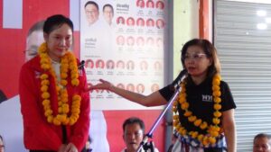 มุกดาหาร – มนพร เจริญศรี ลุยเปิดตัวผู้สมัคร สส.จังหวัดมุกดาหาร พรรคเพื่อไทยทั้ง 2 เขต ประชาชนมาให้กำลังใจกันอย่างคึกคัก ย้ำทวงคืนพื้นที่มุกดาหาร