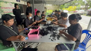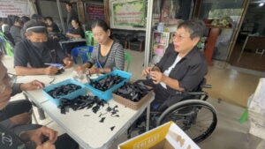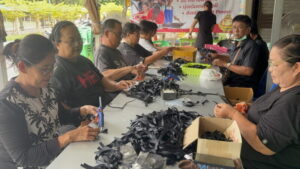 อ่างทอง – ชมรมสตรีคนพิการฝึกอบรมตัดเย็บเสื้อผ้าตัดเย็บเสื้อผ้าจากแบบชุดไทยเรือนต้นพร้อมทำโบสีดำแจกจ่ายให้กับประชาชนทั่วไป