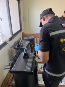 จากนั้นเจ้าหน้าที่จึงได้ทำการตรวจยึดอุปกรณ์ทั้งหมด เพื่อตรวจพิสูจน์และขยายผลหาผู้ร่วมขบวนการมาดำเนินคดีตามกฎหมายต่อไป..