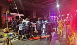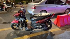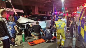 เก๋งไฟฟ้าฝ่าไฟแดงข้ามเลน พุ่งชน จยย. 2 คัน – BMW อีก 1 เจ็บ 3 สาหัส 1 ราย กลางแยกทุ่งครุ (มีคลิปจากกล้องหน้ารถ)