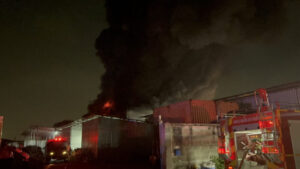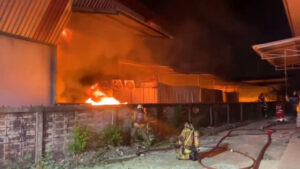 ไฟไหม้โรงงานรีไซเคิลยางรถยนต์เก่าย่านบางพลียังคุมเพลิงไม่ได้