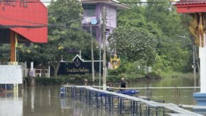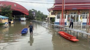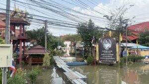 ปทุมธานี – ชุมชนวัดโคกวิกฤตน้ำท่วม2เดือนสูง1.50เมตรโรงเรียนต้องปิดแถมน้ำเน่าจากหมู่บ้านด้านหน้าไหลท่วมหนัก