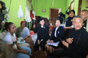 นางสาวสมพรทิพย์ สุขวโรดม กล่าวว่า ได้เข้ามาตรวจสอบครอบครัวนี้พบว่าทางสำนักงานเคยให้ความช่วยเหลือกรณีที่พิการมาแล้ว วันนี้ได้มาตรวจสอบสิทธิต่างๆของคนในครอบครัว ทั้งเด็กและผู้ใหญ่ เพื่อจะได้ให้ความช่วยตามระเบียบต่อไป โดยได้มอบความช่วยเหลือเบื้องต้นเป็นถุงยังชีพและเงินสดจำนวนหนึ่ง ในส่วนของของผุ้เสียชีวิตนั้นต้องให้หน่วยงานที่เกี่ยวข้องติดตามต่อไป