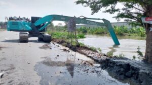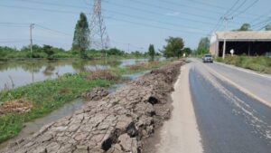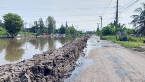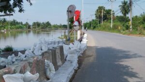 ปทุมธานี – อบจ.ส่งแม็คโครบูมยาว 5 คันเสริมคันกั้นน้ำคลองขุดใหม่หลังน้ำสูงขึ้น 2-3 ซม.ต่อวัน