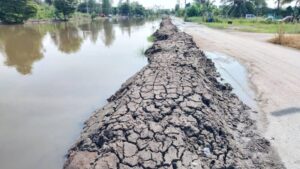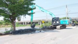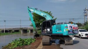 ปทุมธานีอบจ.ส่งแม็คโครบูมยาว 5 คันเสริมคันกั้นน้ำคลองขุดใหม่หลังน้ำสูงขึ้น 2-3 ซม.ต่อวัน