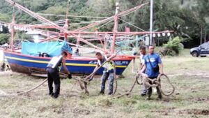 เจ้าหน้าที่ได้เข้าดำเนินการ ลากจูงเรือประมงจำนวนหนึ่งที่เสี่ยงต่อการถูกคลื่นลมซัดเสียหาย ให้ออกห่างจากพื้นที่อันตราย และเคลื่อนย้ายเข้าสู่จุดปลอดภัยบริเวณ เขาล้อมหมวก เพื่อป้องกันความเสียหายต่อทรัพย์สินและชีวิตของชาวประมง