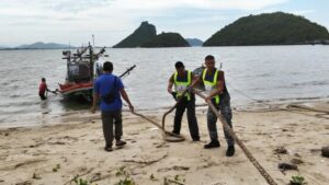 ศูนย์บรรเทาสาธารณภัยกองบิน 5 เข้าช่วยเหลือชาวประมงพื้นบ้าน หลังลมมรสุมแรงพัดถาโถมชายฝั่งอ่าวประจวบฯ