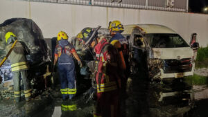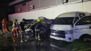 เพลิงไหม้รถยนต์จอดรถซ่อมวอด 3 คัน คาดว่าน่าจะเกิดจากไฟฟ้าลัดวงจร เสียหายหลายล้านบาท