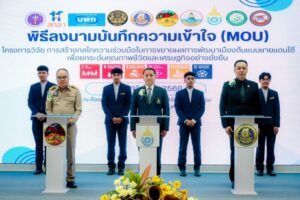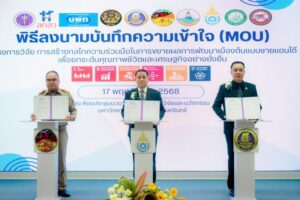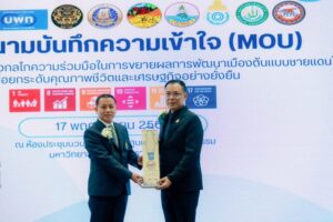 เมื่อเวลา 09.15 น. วันที่ 17 พฤศจิกายน 2568 ที่ห้องประชุมนวบานบุรี ชั้น 3 ศูนย์วิจัยและนวัตกรรม มหาวิทยาลัยนราธิวาสราชนครินทร์ ตำบลโคกเคียน อำเภอเมือง จังหวัดนราธิวาส นายวีรพัฒน์ บุณฑริก รองผู้ว่าราชการจังหวัดนราธิวาสเป็นประธานและร่วมลงนามบันทึกข้อตกลงความร่วมมือ หรือ (MOU)โครงการวิจัยการสร้างกลไกความร่วมมือในการขยายผลการพัฒนาเมืองต้นแบบชายแดนใต้เพื่อยกระดับคคุณภาพชีวิตและเศรษฐกิจอย่างยั่งยืน