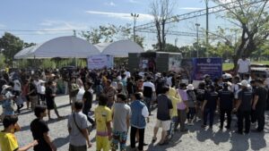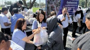 ปทุมธานีอดีตสส.ร่วมทต.บ้านกลางและมูลนิธิสแตนเลย์แจกถุงยังชีพบรรเทาทุกข์ชาวบ้านริมน้ำเกือบ 500 หลังคาเรือน