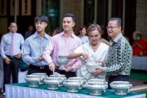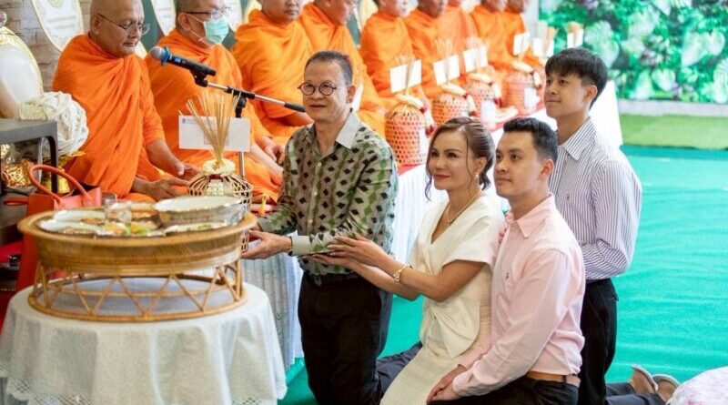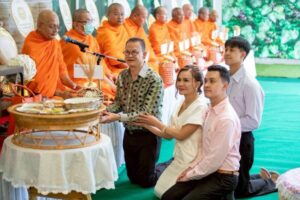ในพิธีเป็นมงคลนี้ ได้นิมนต์พระพรหมวัชรวิสุทธิ์ เจ้าคณะภาค 4 เจ้าอาวาสวัดคูยาง (พระอารามหลวง) และพระสงฆ์มาเจริญพระพุทธมนต์ เพื่อความเป็นสิริมงคลแก่ตนเองและครอบครัวและความตั้งใจในการทำบุญ ทั้งการร่วมกันใส่บาตรและถวายภัตตาหารแด่พระสงฆ์