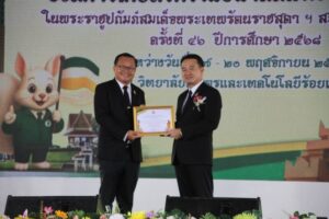 ประธานในพิธีเปิดกล่าวขอบคุณคณะกรรมการจัดงานและหน่วยงานที่ให้การสนับสนุน พร้อมประกาศเปิดการประชุมวิชาการองค์การเกษตรกรในอนาคตแห่งประเทศไทย ในพระราชูปถัมภ์สมเด็จพระเทพรัตนราชสุดาฯ สยามบรมราชกุมารี ระดับภาคตะวันออกเฉียงเหนือ ครั้งที่ 46 อย่างเป็นทางการ จากนั้นเป็นพิธีมอบโล่รางวัลแก่หน่วยงานและบุคคลดีเด่น พร้อมเยี่ยมชมกิจกรรมต่าง ๆ ภายในงาน