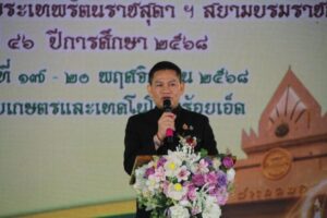 นายสุเทพ สระจันทร์ ประธานกรรมการอำนวยการ อกท. ภาคตะวันออกเฉียงเหนือ กล่าวว่า การจัดการประชุมวิชาการในครั้งนี้จัดขึ้นระหว่างวันที่ 17 – 20 พฤศจิกายน 2568 ภายใต้ชื่องาน “หอโหวดสูงเทียมฟ้า เกษตรก้าวหน้าเมืองเกินร้อย อาชีวะเกษตรแฟร์ ครั้งที่ 46 ” มีวัตถุประสงค์เพื่อเฉลิมพระเกียรติสมเด็จพระกนิษฐาธิราชเจ้า กรมสมเด็จพระเทพรัตนราชสุดาฯ สยามบรมราชกุมารี องค์อุปถัมภ์ขององค์การ ตลอดจนเพื่อเป็นเวทีแลกเปลี่ยนเรียนรู้ เผยแพร่องค์ความรู้และเทคโนโลยีการเกษตรสมัยใหม่ของสมาชิก อกท. ครู บุคลากร และหน่วยงานต่าง ๆ รวมถึงเป็นการเชิดชูเกียรติหน่วย อกท. สมาชิก ศิษย์เก่า และผู้ทำคุณประโยชน์แก่ อกท.