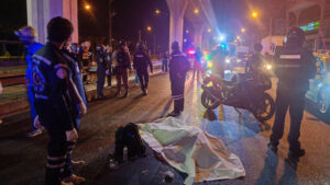 เมื่อเวลา 21.00 น.วันที่ 18 พฤศจิกายน 2568 เจ้าหน้าที่ตำรวจ สภ.เมืองสมุทรปราการ ได้รับเหตุมีอุบัติเหตุรถจักรยานยนต์ถูกรถไม่ทราบชนิดเฉี่ยวชนทำให้มีผู้เสียชีวิต เหตุเกิดบนถนนสุขุมวิทสายเก่า ขามุ่งหน้าปากน้ำ ใกล้เคียงปากซอยฟอกหนัง กม.30 ตำบลท้ายบ้าน อำเภอเมือง จังหวัดสมุทรปราการ หลังรับแจ้งจึงพร้อมด้วย เจ้าหน้าที่มูลนิธิร่วมกุศลสมุทรปราการ และ เจ้าหน้าที่สมาคมกู้ภัยสมุทรปราการ เดินทางตรวจสอบที่เกิดเหตุ