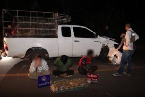 โดยใช้รถยนต์กระบะ ยี่ห้อ โตโยต้า สีขาว ทะเบียน ผท 1955 อุดรธานี ขับเข้ามาในพื้นที่ จนท.จึงจัดกำลัง ซุ่มเฝ้าตรวจ จนกระทั่ง เวลา 0230 จนท.ได้ตรวจพบรถยนต์คันดังกล่าว ตรงตามลักษณะที่แหล่งข่าวแจ้ง ขับมาตามเส้นทาง ถนนหมายเลข 3009 จนท.จึงได้ทำการไล่ติดตาม สกัดจับรถยนต์คันดังกล่าวไว้ได้ ที่บริเวณ ถนนหมายเลข 3009 บ.ดอนเสียด ต.บ้านต้อง อ.เซกา จว.บ.ก. หลังจากการตรวจค้นภายในรถยนต์ พบของกลางยาเสพติดให้โทษประเภท 1 (ยาบ้า) จำนวน 136,000 เม็ด จนท.จึงนำตัวผู้ต้องหาพร้อมของกลาง ส่ง กก.สืบสวน ภ.จว.บึงกาฬ เพื่อดำเนินการตรวจนับโดยละเอียด และดำเนินตามกฎหมาย