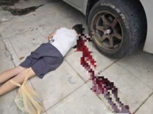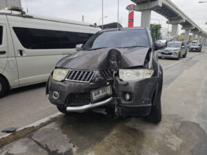 ในที่เกิดเหตุ พบรถยนต์นั่งส่วนบุคคล ยี่ห้อ มิตซูบิชิ ปาเจโร่สปอร์ต สีน้ำตาล ทะเบียน ฆล 3531 กรุงเทพมหานคร จอดอยู่ สภาพด้านหน้าพังยับ ที่ด้านหน้าที่เสาไฟส่องสว่างมีร่องรอยการถูกชนจนเอียง ใกล้กันพบร่าง นายวิชัย สุขสันติ อายุ 60 ปี มีบาดแผลที่ศีรษะขนาดใหญ่ นอนคว่ำหน้าจมกองเลือดอยู่บนฟุตบาท ข้างรถยนต์กระบะ ยี่ห้อ อีซูซุ ดีแมคซ์ สีเทา ทะเบียน 8 กร 7341 กรุงเทพมหานคร ที่จอดอยู่ข้างร้านฟิล์มดังกล่าว มีคราบเลือด ชิ้นส่วนเนื้อ และเส้นผม ติดอยู่ที่ล้อแม็กหน้าฝั่งขวา ส่วนคู่กรณี คือ นายธนันวัฒน์ อริยบุณยานนท์ อายุ 60 ปี ชาวชลบุรี ซึ่งเป็นคนขับรถปาเจโร่สปอร์ต หลังเกิดเหตุได้ถูกเจ้าหน้าที่ตำรวจคุมตัวไปที่โรงพัก