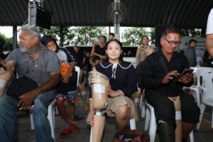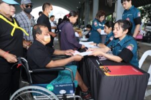 วันนี้ (วันศุกร์ที่ 21 พฤศจิกายน พ.ศ. 2568) มูลนิธิป่อเต็กตึ๊ง นำโดย นายวิชิต ชินวงศ์วรกุล รองประธานกรรมการ พร้อมด้วย นางศิริกุล โอภาสวงศ์ กรรมการและเลขาธิการ นายชาญกิจ วิทยาวรากรณ์ กรรมการ นายชูเดช เตชะไพบูลย์ ผู้ช่วยกรรมการ และนางสาวดวงชุตา ติยะพจนพรกุล ผู้ช่วยผู้จัดการฝ่ายสังคมสงเคราะห์ นำทีมแผนกส่งเสริมการศึกษาและอาชีพ ลงพื้นที่ มอบค่าพาหนะ พร้อมด้วยเครื่องอุปโภคบริโภค ประกอบด้วย เส้นหมี่ขาว วุ้นเส้น น้ำมันพืช ขนมเบ็ดเตล็ด รองเท้าฟองน้ำ บรรจุถุงผ้าดิบมูลนิธิฯ ให้แก่ผู้รับขาเทียม และช่างอาสาสมัคร ที่เข้าร่วมโครงการออกหน่วยทำขาเทียมพระราชทานเคลื่อนที่ ครั้งที่ 175 รวมจำนวน 175 คน รวมงบประมาณเป็นเงินทั้งสิ้น 158,928.75 บาท พร้อมมอบรถโดยสารขนาดเล็ก (Mini Bus) มูลค่า 2,950,000 บาท แก่มูลนิธิขาเทียม ในสมเด็จพระศรีนครินทราบรมราชชนนี เพื่อถวายเป็นพระราชกุศลแด่สมเด็จพระนางเจ้าสิริกิติ์ พระบรมราชินีนาถ พระบรมราชชนนีพันปีหลวง รวมงบประมาณดำเนินการในครั้งนี้ทั้งสิ้น 3,108,928.75 บาท (สามล้านหนึ่งแสนแปดพันเก้าร้อยยี่สิบแปดบาทเจ็ดสิบห้าสตางค์) โดยมี ศาสตราจารย์เกียรติคุณ นายแพทย์เกษม วัฒนชัย องคมนตรี และประธานกรรมการมูลนิธิขาเทียม ในสมเด็จพระศรีนครินทราบรมราชชนนี เป็นประธานในพิธี ณ โดมอเนกประสงค์ สำนักงานเทศบาลตำบลเทพารักษ์ อำเภอเมือง จังหวัดสมุทรปราการ