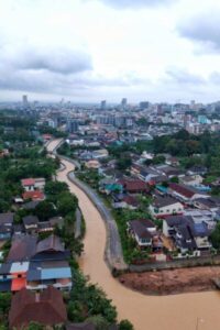 สถานการณ์น้ำป่าเขาคอหงส์ ได้ไหลลงอ่างกักเก็บน้ำแก้มลิงคลองเรียน ก่อนจะล้นสปริงเวย์ไหลเข้าท่วมพื้นที่ชุมชนบ้านทุ่งรี ตำบลคอหงส์ อำเภอหาดใหญ่ จังหวัดสงขลา ทำให้ชาวบ้านและนักศึกษาในพื้นที่ต่างได้รับผลกระทบ ก่อนจะไหลเข้าท่วมตัวเมืองหาดใหญ่จนได้รับความเสียหายเป็นวงกว้าง