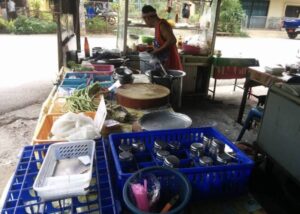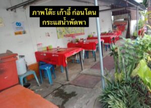 จากการสอบถาม เจ้าของร้าน ได้เล่าว่า ช่วงที่กระแสน้ำไหลลงมาซึ่งค่อนข้างมีความรุนแรงได้ไหลมาตรงร้านตนเองพร้อมกับพัดเอาขยะต่างๆมาด้วย ช่วงที่กระแสน้ำแทงเข้ามาภายในร้านตนกับสามี ก็ได้ช่วยกันดันโต๊ะที่วางอุปกรณ์ทำกับข้าว เพื่อไม่ให้กระแสน้ำไหลแทงเข้ามา แต่ด้วยกระแสน้ำที่ไหลมาแรง จึงต้านเอาไว้ไม่อยู่ ทำให้กระแสน้ำพัดเอาอุปกรณ์ต่างๆที่ทำกับข้าง โต๊ะ เก้าอี้ทั้งหมดไปกับกระแสน้ำด้วย ซึ่งตนและสามีได้ลงทุนไปเป็นหมื่นๆ ต้องมาลงทุนซื้อใหม่ทั้งหมดอีก