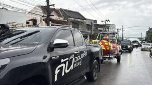 หลายครัวเรือนยังถูกตัดขาด ทีมกันจอมพร้อมเจ็ตสกีเร่งอพยพช่วยเหลือด่วน ในพื้นที่บางกล่ำ – ควนลัง