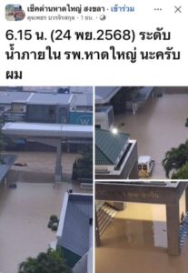 น้ำเข้าท่วมย่านเศรษฐกิจตัวเมืองหาดใหญ่รอบ 2 หลังน้ำจากสะเดาทะลักลงคลอง ร.1
