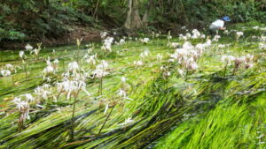 พังงา-หนึ่งเดียวในโลก พลับพลึงธาร ราชินีแห่งสายน้ำ ออกดอกบานสะพรั่งที่คลองตาเษม คุระบุรี