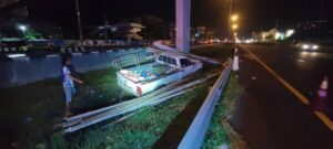 ปทุมธานี – รปภ.วิ่งข้ามถนนไปช่วยรถกระบะชนตอม่อถูกเก๋งพุ่งชนเสียชีวิตคาช่องทางด่วน