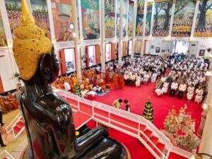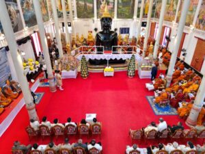 ***เมื่อเวลา 09.30 น. วันที่ 24 พ.ย. 68 ที่วิหารหลวงพ่อโต วัดมหาพุธาราม พระอารามหลวง ตำบลเมืองเหนือ อำเภอเมือง จังหวัดศรีสะเกษ นายอนุรัตน์ ธรรมประจำจิต ผู้ว่าราชการจังหวัดศรีสะเกษ เป็นประธานฝ่ายฆารวาส นำหัวหน้าส่วนราชการ ภาครัฐ เอกชน พุทธศาสนิกชนชาวจังหวัดศรีสะเกษ ร่วมประกอบพิธีปิดทองคำแท้ และบรรจุพลอยมงคลพระนาภีหลวงพ่อโต และทอดผ้าป่าสามัคคี เพื่อบูรณะปรับปรุง ปิดทอง หลวงพ่อโต ในรอบ 10 ปี ซึ่งถือเป็นวัฒนธรรมสำคัญ ที่สะท้อนถึงความศรัทธา และความเคารพ ต่อพระพุทธศาสนา และเพื่อฟื้นฟูความงดงาม ช่วยอนุรักษ์วัตถุโบราณที่มีค่าให้คงอยู่สืบต่อไป โดยมี พระธรรมวัชรวิสุทธิ์ (พรหมา สปฺปญฺโญ ป.ธ.๙) ที่ปรึกษาเจ้าคณะภาค 10 เจ้าอาวาสวัดจักรวรรดิราชาวาสวรมหาวิหาร เป็นประธานฝ่ายสงฆ์ นำ พระวชิรสิทธิธาดา (สิทธานต์ สิทฺธิวโร ป.ธ.๖) เจ้าคณะจังหวัดศรีสะเกษ และคณะสงฆ์จังหวัดศรีสะเกษ ร่วมประกอบพิธี
