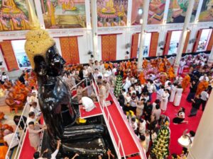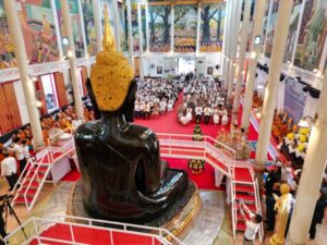 ส่องเลขหลวงพ่อโต พระคู่บ้านคู่เมืองศรีสะเกษ ปางมารวิชัย อายุกว่า 240 ปี ในงานปิดทองคำแท้ และบรรจุพลอยมงคลพระนาภีหลวงพ่อโต