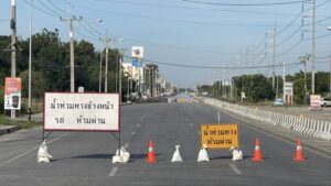 อ่างทอง – สถานการณ์น้ำท่วมล่าสุดอำเภอป่าโมกทางหลวง33ยังปิดการจราจรเหตุยังมีน้ำท่วมขัง ส่วนตำบลโผงเผงน้ำเริ่มลดชาวบ้านยังอาศัยเรือเข้าออก
