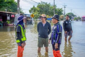 อ่างทอง – สถานการณ์น้ำท่วมล่าสุดอำเภอป่าโมกทางหลวง33ยังปิดการจราจรเหตุยังมีน้ำท่วมขัง ส่วนตำบลโผงเผงน้ำเริ่มลดชาวบ้านยังอาศัยเรือเข้าออก