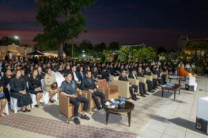 “จึงต้องย้ายสถานที่จัดงานไปลานสนามหญ้า ข้างโรงแรมวังจันทน์ริเวอร์วิว ตั้งแต่วันนี้ 25 พฤศจิกายน 2568 หลังจากทางมหาวิทยาลัยราชภัฏพิบูลสงคราม ได้จัดงานน้อมส่งเสด็จสู่สวรรคาลัย พระบรมราชินีนาถ พระบรมราชชนนีพันปีหลวง จัดงาน ณ.สวนกลางเมือง มาตั้งแต่วันที่ 17 พฤศจิกายน และได้ขอจัดถึง 5 ธันวาคม 2568 แต่กลับเปลี่ยนสถานที่กะทันหัน” ผศ.ดร.ชุมพล กล่าว