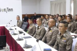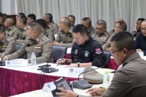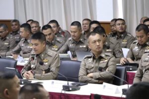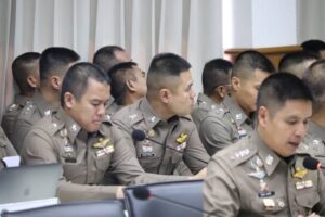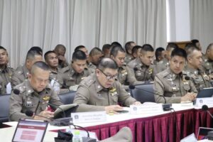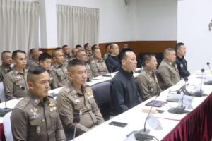 ผกก.ฯ, หน.สภ., รอง ผกก.ฯ, สว.ฯ, และข้าราชการตำรวจที่เกี่ยวข้องเข้าร่วมการประชุมฯ