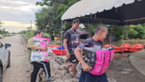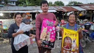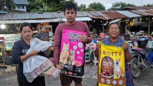 อ่างทอง – หนุ่มใจบุญแอดมินเพจดังอ่างทองนำอาหารหมาแมวแจกจ่ายให้กับแมวและหมาที่ได้รับผลกระทบน้ำท่วม ทั้งสุนัขจรหิวโหยและมีเจ้าของที่ได้รับควงามเดือดร้อน