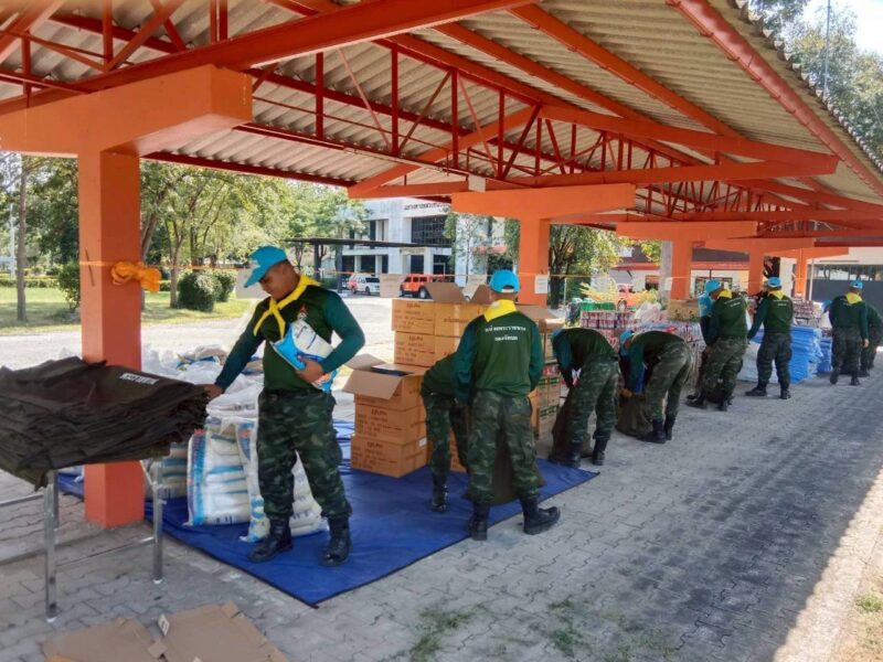 มณฑลทหารบกที่ 310 จัดกำลังพลจิตอาสาบรรจุสิ่งของพระราชทาน สนับสนุน สำนักงานป้องกันและบรรเทาสาธารณภัยจังหวัดตาก