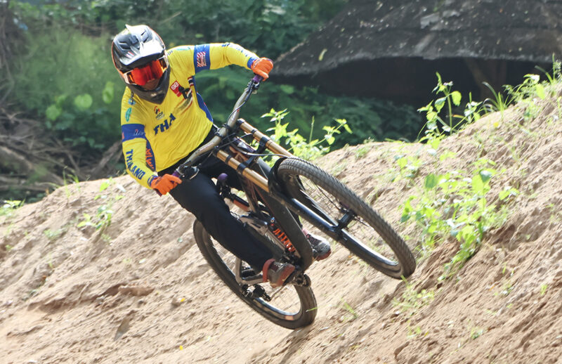 ด้าน “โค้ชแม็ก” จ.ส.อ. สิทธิชัย เกตุแก้วมณี ผู้ฝึกสอนนักปั่นเสือภูเขาทีมชาติไทย ประเภทดาวน์ฮิล เปิดเผยว่า สำหรับสภาพร่างกายของนักกีฬาส่วนใหญ่มีความสมบูรณ์เต็มที่ และทำการฝึกซ้อมที่สนามแข่งขันทุกวัน โดยเฉพาะ “เบส” อส.ทพ.เมธาสิทธิ์ บุญเสน่ห์ นักปั่นความหวังเจ้าของแชมป์เอเชียรายการดาวน์ฮิล 4 สมัย มีความฟิตมาก ส่วนอาการบาดเจ็บที่ข้อเท้าของ “เพ็ชร์” จ.ท.หญิง วิภาวี ดีคาบาเลส ก็หายดีเป็นปกติแล้วแต่ก็ยังอยู่ในความดูแลของนักกายภาพบำบัดประจำทีม ส่วนเป้าหมายการคว้าเหรียญทองรายการดาวน์ฮิลชายและดาวน์ฮิลหญิง ตนมีความมั่นใจว่าหากไม่มีอุบัติเหตุระหว่างแข่งขันหรือเหตุการณ์ที่ไม่คาดฝัน นักปั่นไทยน่าจะมีโอกาสคว้าเหรียญทองมาครองได้ทั้ง 2 รายการ