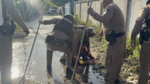 อ่างทอง ชายวัย54ปีเมาสุราคลั่งอาวาดใช้มีดตัดท่อน้ำประปาหน้าบ้านใกล้เคียง3หลังคาเรือน ก่อนไปนอนเล่นน้ำ เห็นเจ้าหน้าที่ตำรวจยอมให้จับโดยละม่อม อ้างว่าเป็นพญานาคมาเล่นน้ำ