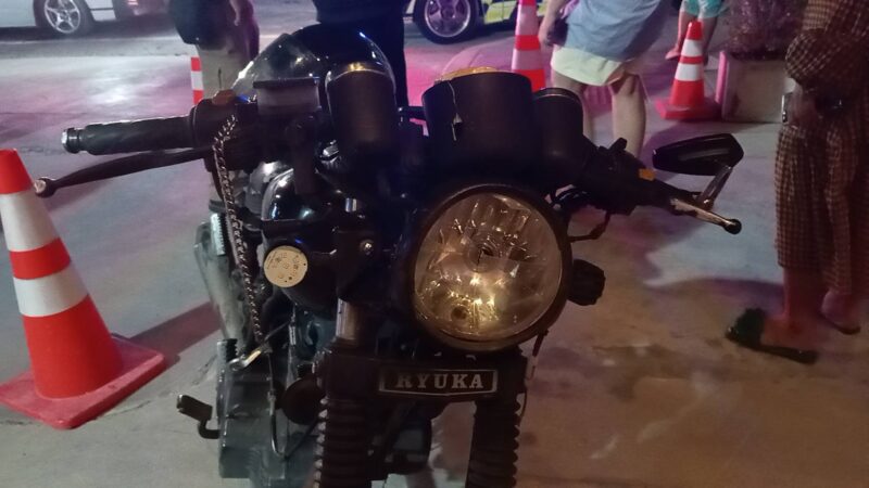 ในที่เกิดเหตุยังพบรถจักรยานยนต์ยี่ห้อจงเซิน รุ่นริวก้า สีดำ-แดง ทะเบียน 6 กฉ 6336 กรุงเทพมหานคร สภาพพังเสียหายหลายจุด ทั้งเรือนไมล์และโคมไฟหน้าแตก ต่อมาทราบว่าผู้ขับขี่เป็นชาย อายุ 21 ปี และเป็นชาวปากีสถาน
