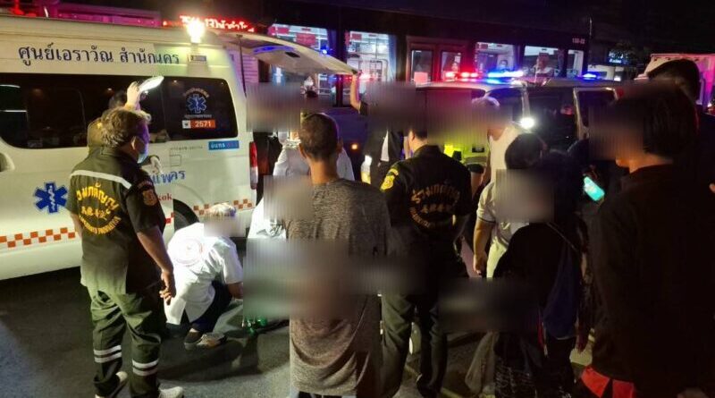 เมื่อถึงจุดเกิดเหตุ บนถนนมืดสลัวกลางย่านชุมชน พบหญิงสูงอายุอาการสาหัส นอนหงายอยู่บนพื้นถนน สัญญาณชีพอ่อนแรง มีบาดแผลฉกรรจ์บริเวณศีรษะเลือดไหลนอง และบาดแผลถลอกทั่วร่างกาย ข้างตัวพบกระเป๋าผ้าสีขาวและไม้เท้าตกอยู่ ผู้ได้รับบาดเจ็บ อายุประมาณ 75–80 ปี เป็นอดีตครูวิทยาลัยพณิชยการ แห่งหนึ่ง เจ้าหน้าที่อาสาสมัครเร่งทำ CPR ต่อเนื่อง ก่อนประสานรถกู้ชีพ ALS เอราวัณรับตัวส่งโรงพยาบาลสุขสวัสดิ์อย่างเร่งด่วน