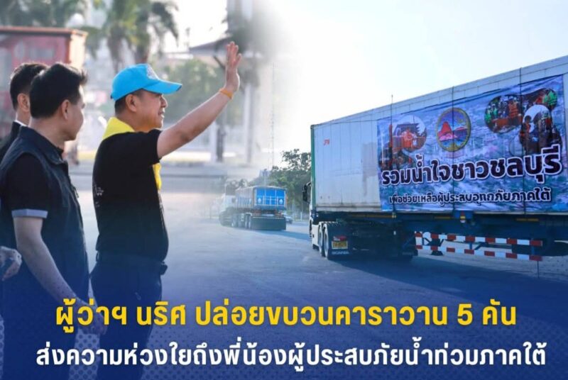 ชาวชลบุรีรวมใจ!ผู้ว่าฯนริศ ปล่อยขบวนคาราวาน 5 คันส่งความห่วงใยถึงพี่น้องผู้ประสบภัยน้ำท่วมภาคใต้