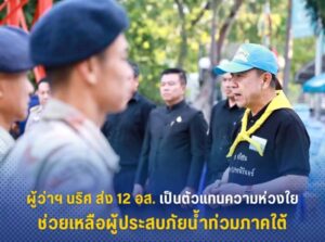 ผู้ว่าฯนริศส่ง 12 อส.เป็นตัวแทนความห่วงใยช่วยเหลือผู้ประสบภัยน้ำท่วมภาคใต้