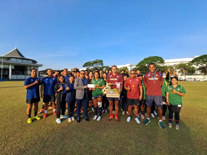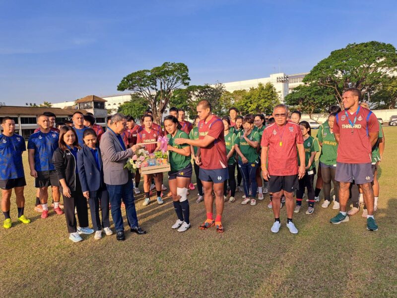 วันที่ 27 พ.ย.68 เวลา 07.00 น. ที่ สนามรักบี้ฟุตบอล รร.วชิราวุธวิทยาลัย ซึ่งเป็นสนามฝึกซ้อมของทีมรักบี้ฟุตบอลชาย-หญิงทีมชาติไทย ชุดสู้ศึกซีเกมส์ ครั้งที่ 33 ที่ตั้งความหวัง 2 เหรียญทองในซีเกมส์ครั้งนี้ ดร.ณัฏฐ์ ธีรณัฐสุภานนท์ ที่ปรึกษากิตติมศักดิ์คณะกรรมาธิการการท่องเที่ยวและการกีฬาวุฒิสภา , ที่ปรึกษาคณะอนุกรรมาธิการด้านการกีฬา วุฒิสภา , คณะอนุกรรมาธิการศึกษากฏหมายท่องเที่ยวและกีฬา วุฒิสภา และประธานมูลนิธิกองทุนพัฒนาการกีฬา พร้อมด้วย น.ส.สิริรัตน์ ราวินิจ รองเลขาธิการมูลนิธิฯ , น.ส.ปัญจรีย์ ราวินิจ เหรัญญิกมูลนิธิฯ เข้าเยี่ยมชมการฝึกซ้อมนักกีฬารักบี้ฟุตบอลทีมชาติไทยชาย-หญิง โดยมีนายสุภรัตน์ อัลภาชน์ กรรมการบริหารสมาคมกีฬารักบี้ฟุตบอลฯ และประธานฝ่ายผู้ฝึกสอนทีมชาติ ฝ่ายแพทย์ และนักกายภาพบำบัด , ผู้ฝึกสอน และนักกีฬารักบี้ฟุตบอลชาย-หญิงทีมชาติไทยให้การต้อนรับ โดย ดร.ณัฏฐ์ ธีรณัฐสุภานนท์ ได้มอบกระเช้าผลไม้ และเงินสนับสนุนการฝึกซ้อมจำนวน 20,000 บาท พร้อมให้โอวาทแก่นักกีฬารักบี้ฟุตบอลซีเกมส์ “โดยขอให้นักกีฬารักบี้ฟุตบอลทุกคนตั้งใจฝึกซ้อม และอยู่ในระเบียบวินัย รักบี้ฟุตบอลเป็นกีฬาที่ต้องใช้พลกำลัง ความเร็ว และมีการปะทะน้องๆนักกีฬาจึงต้องระมัดระวังในเรื่องของอาการบาดเจ็บเป็นพิเศษ ในซีเกมส์ครั้งนี้ผมในนามของมูลนิธิกองทุนพัฒนาการกีฬา รวมถึงกรรมการบริหารทุกท่าน จะร่วมส่งแรงใจไปเชียร์ให้น้องๆทุกคนประสบความสำเร็จในการคว้าเหรียญทองจากแข่งขันกีฬาซีเกมส์ครั้งนี้มาเป็นของขวัญส่งท้ายปีเก่าต้อนรับปีใหม่ให้กับคนไทยทั้งประเทศ