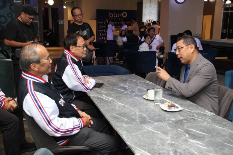 คิม อุย ยัง ผู้ฝึกสอนชาวเกาหลีใต้ , นายบดินทร์ เลิศพิริยะสกุลกิจ ผู้ฝึกสอน , นายสุรศักดิ์ มานุวงศ์ ผู้ฝึกสอน และนักกีฬาโบว์ลิ่งทีมชาติไทย ชาย 4 คน หญิง 4 คนให้การต้อนรับ ดร. ณัฏฐ์ ธีรณัฐสุภานนท์ กล่าวทักทายผู้บริหารสมาคมฯ , คณะฝึกสอนและนักกีฬา ก่อบมอบกระเช้าผลไม้ และเงินสนับสนุนการฝึกซ้อมจำนวน 20,000 บาท ดร.ณัฏฐ์ ธีรณัฐสุภานนท์ กล่าวของคุณผู้บริหารสมาคมกีฬาโบว์ลิ่งแห่งประเทศไทย , ผู้ฝึกสอน และน้องๆนักกีฬาทุกคนกับความเสียสละ ความทุ่มเทเพื่อเป็นตัวแทนประเทศไทย เข้าร่วมชิงชัยในมหกรรมกีฬาซีเกมส์ ไม่ว่าผลแข่งขันจะออกมาอย่างไร ก็ถือว่าทุกคนได้ทำหน้าที่ของตนเองอย่างสุดความสามารถแล้ว และทุกท่านคือความภาคภูมิใจของคนไทยทั้งประเทศ