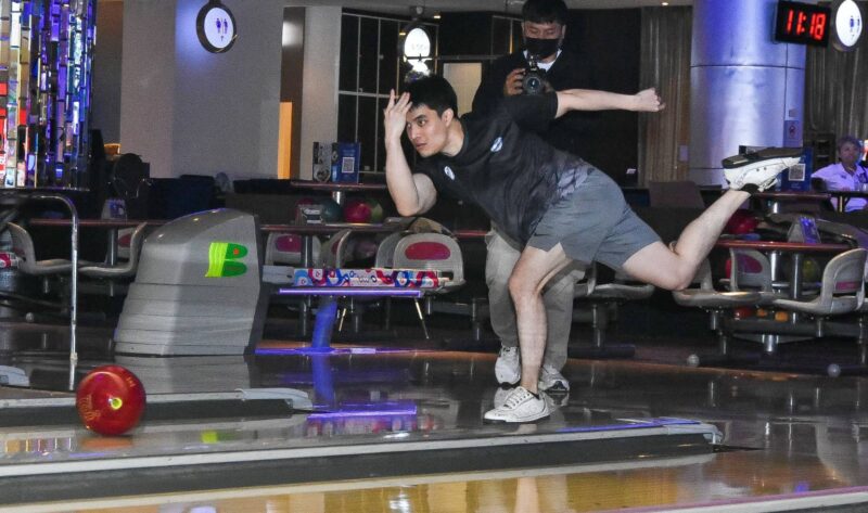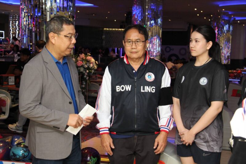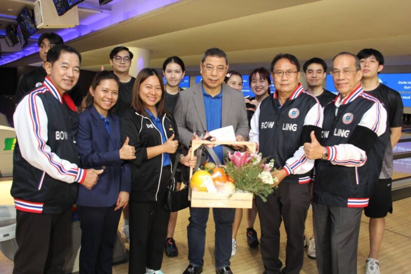 จากนั้นได้เดินทางไปที่ บลูโอ ริธึม แอนด์ โบว์ล เมเจอร์ รัชโยธิน เยี่ยมชมการฝึกซ้อมของนักกีฬาโบว์ลิ่งทีมชาติไทย โดยมี นายวิวัฒน์ชัย รัตนะรัต ผู้จัดการทีมและ อุปนายกสมาคมกีฬาโบว์ลิ่งแห่งประเทศไทย , นายวีรยุทธ จอมใจเหล็ก