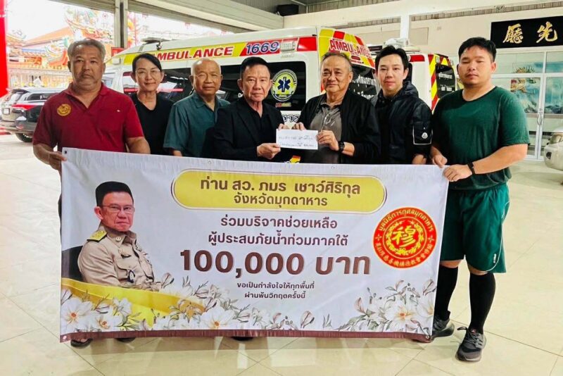 มุกดาหาร – สว.ภมรฯ มอบเงินสดจำนวน 100,000 บาท พร้อมด้วยประชาชนชาวจังหวัดมุกดาหาร ร่วมบริจาคสิ่งของอุปโภค และบริโภคช่วยเหลือน้ำท่วมภาคใต้